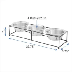 Frisco Straight Triple Feeder Stainless Steel Dog & Cat Bowl