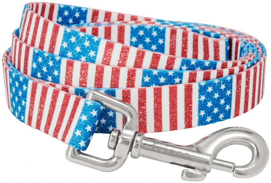 - Red, white and blue Americana design adds a little bit of paw-triotism to all your walks.