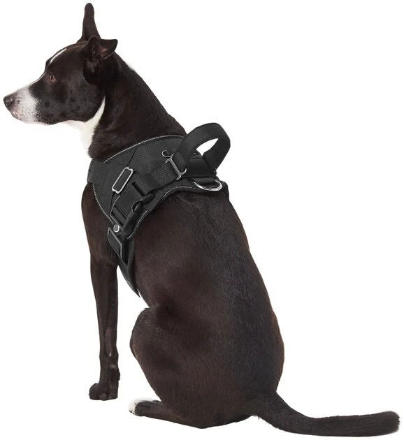 Remember to measure your pet for the paw-fect fit. The Frisco Big Dog Harness is a great walking solution for large dogs, especially pups that like to pull. It’s designed with wide, padded straps that help distribute pressure evenly when your pup pulls, without tightening around the sensitive neck area. It’s made of 100% polyester material with reflective piping for nighttime visibility, easy-click buckles and a heavy-duty D-ring for easy leash attachment so you’re always ready to head out, along with two mini D-rings on top for ID tags or to attach a poop bag holder. Plus, the extra handle on the back sure comes in handy when you need to keep them close. Perfectly sized for bigger dogs, this harness gives your pup full range of motion while helping you keep control for all your adventures together.