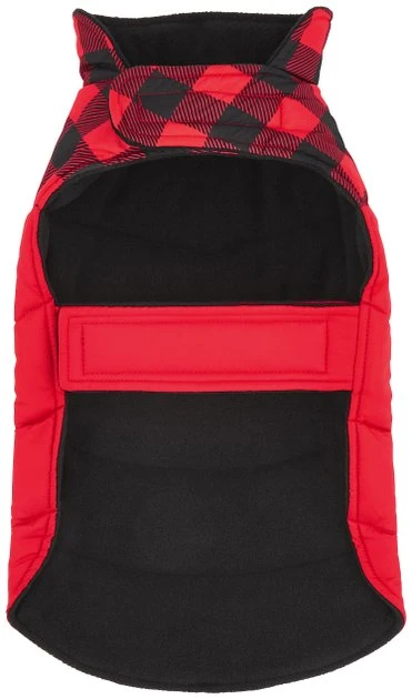 - Pet puffer coat features a protective, water-resistant shell on one side, and a cozy fleece lining on the inside.