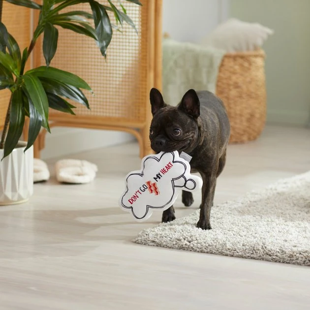 - Thought bubble toy includes a sewn-in squeaker and crinkle paper that for sure will make your dog’s tail wag with joy.