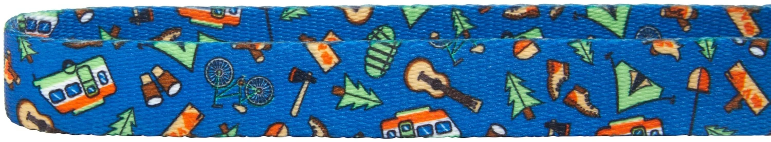Remember to measure your pet for the paw-fect fit! Designed for everyday wear, these collars combine comfort, security and style. Perfect for the outdoors, these collars are patterned with lots of camping classics like campfires, trees, guitars and tools. They’re made with durable, high-quality polyester with an Ultra-Weld™ seal, strength tested to withstand up to seven times the maximum recommended weight for each size. Easy to put on, these collars have plastic buckles with rounded edges for comfort and a nickel-coated D-ring. They come in different sizes with adjustable slides for a custom fit, even for growing puppies. Plus, all sizes come with a separate ring to attach an ID tag. And you can grab a matching leash to complete the look!