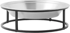 - Stainless-steel bowl with iron stand that raises the bowl for your pup or kitty.