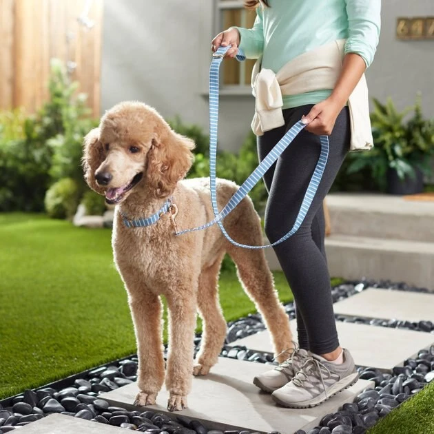 Upgrade your pup’s daily walks with a leash that combines function with a fashion-forward print. Made with nylon webbing, it’s the go-to leash for all your walks, jaunts and strolls. It has a handy loop to help you maneuver your pup, a gold metal snap that attaches easily to any collar or harness, and a handy D-ring to hold poop bags.