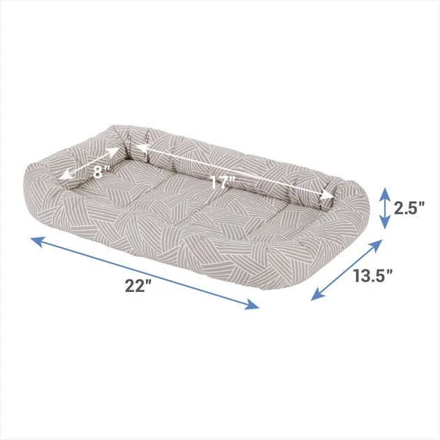 The Frisco Gray Basket Weave Pet Bed & Crate Mat makes your pet’s crate, carrier, kennel, favorite spot or home away from home even cozier. The quilted bed is made with ultra-soft material with a foam pad on the bottom for extra cushioning. As your pet curls up and nestles into the perfect position, he can rest his head on the thick, comfy bolster that’s filled with polyester fiber for added support. No matter whether you’re traveling or simply crate training, your faithful companion will feel right at home with this snug, cozy mat. It also makes a quick and easy bed on its own and a safe spot for your pet when you’re on the go. It comes in a variety of sizes to meet every pet’s needs and fits most standard crates or carriers from 18 inches up to 54 inches. And for easy cleaning, you can throw it in the washer and dryer.