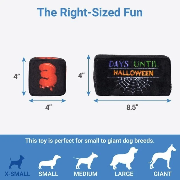 The countdown has begun! Your pup is counting down the days to their favorite holiday of all time: Halloween. These blocks can help them keep track. The blocks are made with spongy material on the inside and a soft cover on the outside, so they’re great as catching and fetching toys. Each block also has a squeaker and crinkle paper to get your pup’s attention and keep them focused on play. Once October 1st comes around, start your countdown and let the spooky spirit of the season build and build!