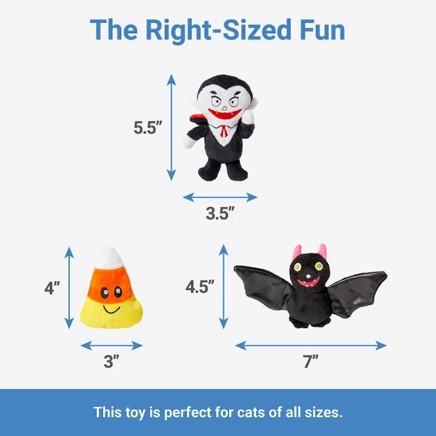 - Includes candy corn, bat and vampire toys to keep their play fresh and fun.