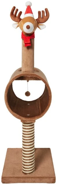 Bring your kitty some holiday cheer this year with this reindeer scratching post and tunnel from Frisco! This festive design features two sisal-wrapped posts, a cozy tunnel to cuddle up in and a fun, dangly toy on the tail. With all this spirit, this reindeer is the perfect addition to your home for the holiday season.