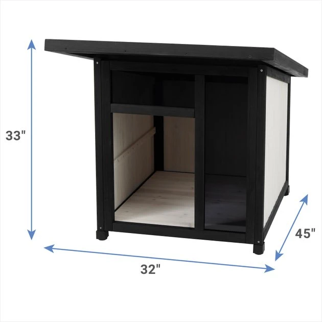 Sometimes the “less is more” approach can help you stand out and this Frisco Aspen doghouse is no exception. With a minimalist approach to the design, this timeless house won’t clash with the modern look to the rest of the house. The raised floor helps to keep your pet dry from the elements, and the slanted PVC roof repels rain and snow runoff, ensuring ultimate comfort and coziness throughout the day. With solid wood, metal hardware, and adjustable legs for placement convenience, you can expect your pooch to call this house a home for a long time to come.