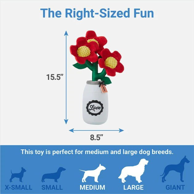 - Plush toy blooms feature a squeaker in each flower, plus one in the jar, that’ll remind everyone who’s a good boy or girl every time it sounds off.