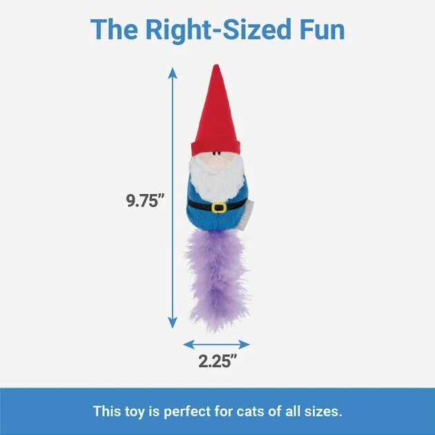 Get ready to make playtime magical! This noteworthy gnome provides the best of both worlds—the perfect shape for cats to wrestle and “bunny kick” with their hind paws, and the crinkly sounds that drive them wild. You’ll know it’s your feline’s fave when you see them carrying it around the house. The furry tail adds motion to stimulate your kitty’s hunting instincts, so toss it to give them the thrill of the chase. It’s also spiked with USA catnip for even more exciting play.