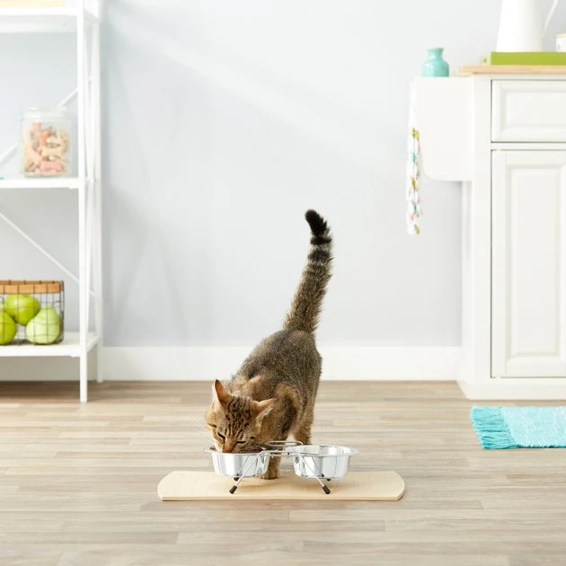 - Sturdy base with non-skid rubber feet ensures a secure grip that prevents sliding and spills while your pet eats and drinks.