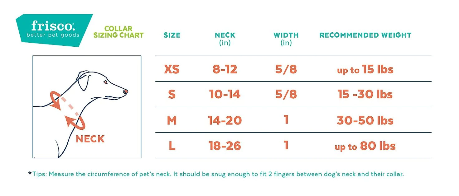 This Frisco collar is manufactured in the USA from foreign and domestic parts.