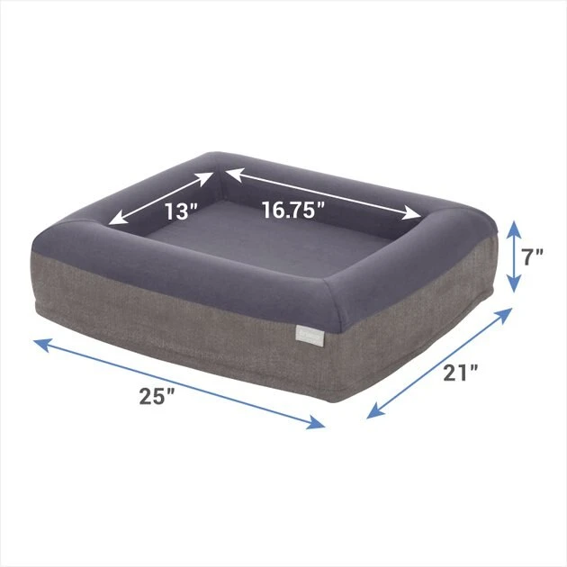 Sweet dreams are made of soft faux suede with the Frisco Orthopedic Rectangle Bolster Pet Bed. Tuck your pet in knowing they’ll be snoozing on a combined pressure relieving memory foam and durable support foam that cushions their muscles, bones and joints to help provide a restful and relaxing slumber. It even features bolster sides for your pet to prop their furry head on. The feel-good faux suede material encourages major snuggle-fests, plus the cover is easy to remove and throw into your washing machine.