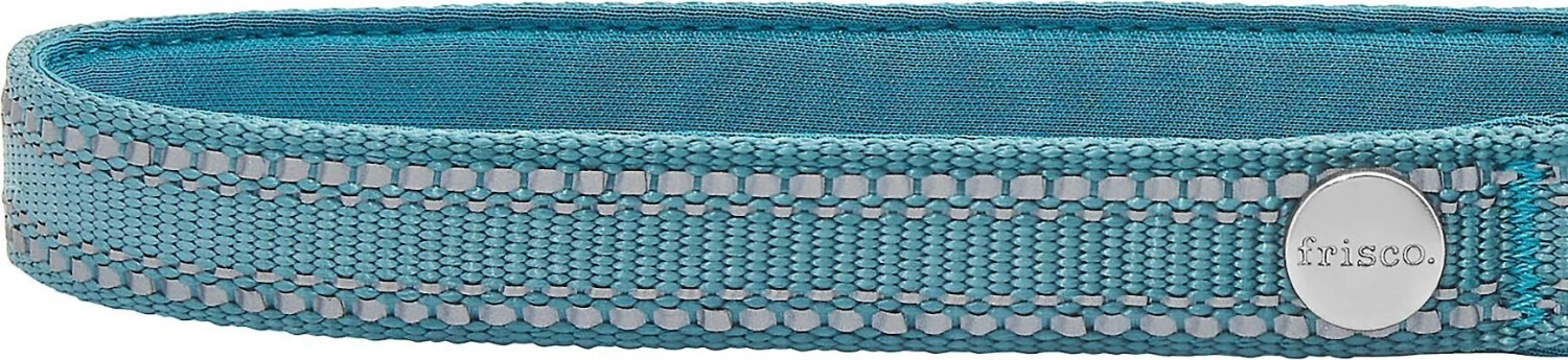 Get your pup geared up for all your outdoor adventures with this Frisco Outdoor Nylon Reflective Comfort Padded Collar, Bayou Teal, Extra Small, Neck: 8-12-in, Width: 5/8th-in + Dog Leash, Bayou Teal, Small – Length: 6-ft, Width: 5/8-in bundle! The collar is made with durable nylon and has a padded back for your dog’s comfort. On the outside, there are two rows of reflective tape for greater visibility in low light, which helps make nighttime walks safer. Plus, it has a D-ring for secure leash attachment and a separate tag ring, too. Designed for durability, comfort and control, the matching leash is made from webbed nylon and features dual handles—one at the top and one further down—with soft padding inside, just like the collar! Down the leash, there are dual strips of reflective tape that increase lowlight visibility, which helps make your dusk and nighttime walks a little safer for you and your paw-tner.
