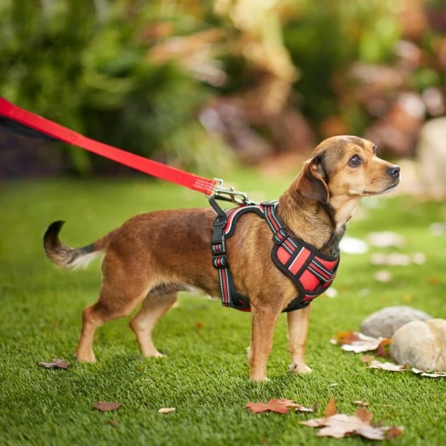 Your pup will wanna walk all day and all night with the Frisco Padded Reflective Harness. It features a front and black clip so you can switch between your everyday walks or utilize the no-pull functionality when you’re training your buddy to stroll by your side. The reflective webbing helps keep your pup visible and safe at night, plus the lightweight design means your BFF will feel comfortable when they’re gearing up for their adventure. For extra security, there’s even a handle on top you can grab to keep your dog safe. Choose from multiple colors and sizes to find the perfect fit for your fur friend.