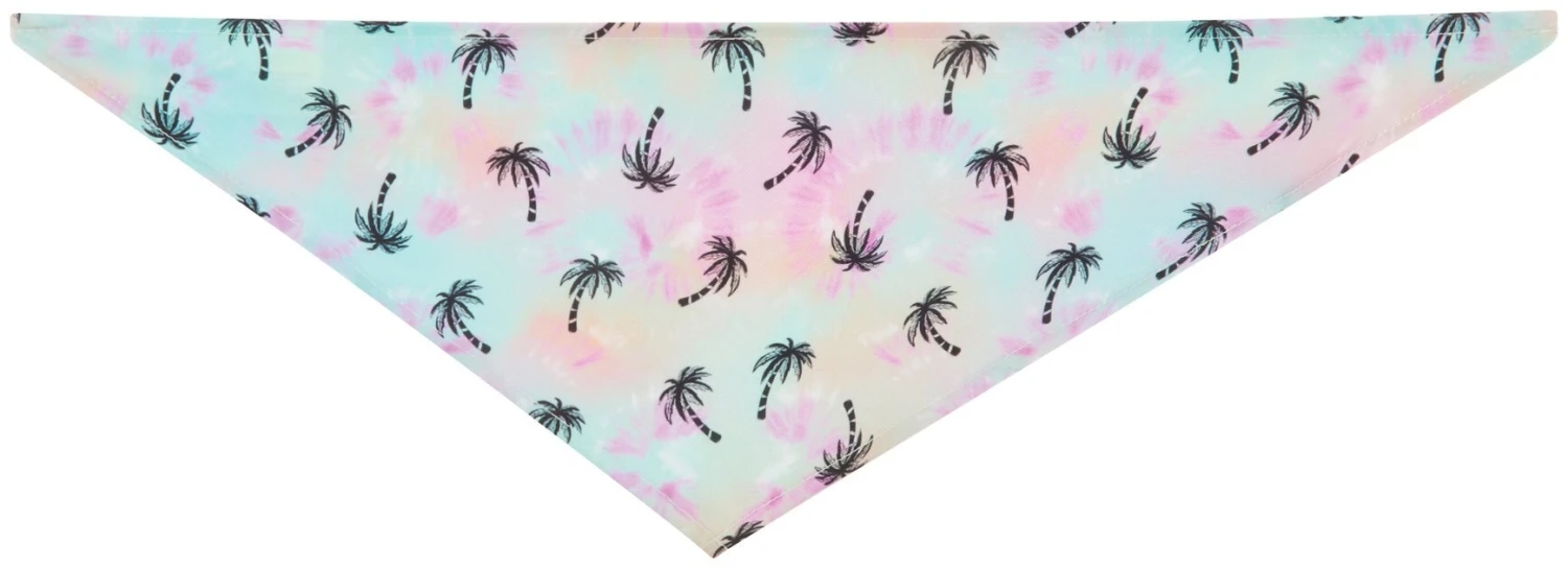 - Bandana comes in pink-and-blue base with a bunch of palm trees all over for the perfect summer look.