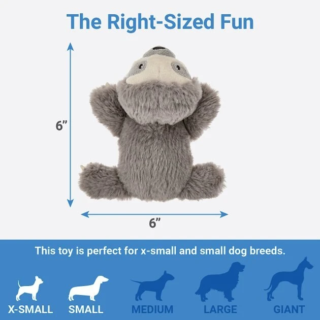 Toss, squeak, repeat-make playtime extra cozy and noisy with the Frisco Plush Squeaking Sloth Dog Toy. Bust boredom like a boss, er, sloth! This chill critter features a built-in squeaker to turn up the excitement and soft plush fabric for cuddly softness. It has a nylon lining on the inside and a touchable texture outside, which means it’s great for playing or snuggling . Plus, it comes in two sizes so you can find the one that’s just right for your pup.