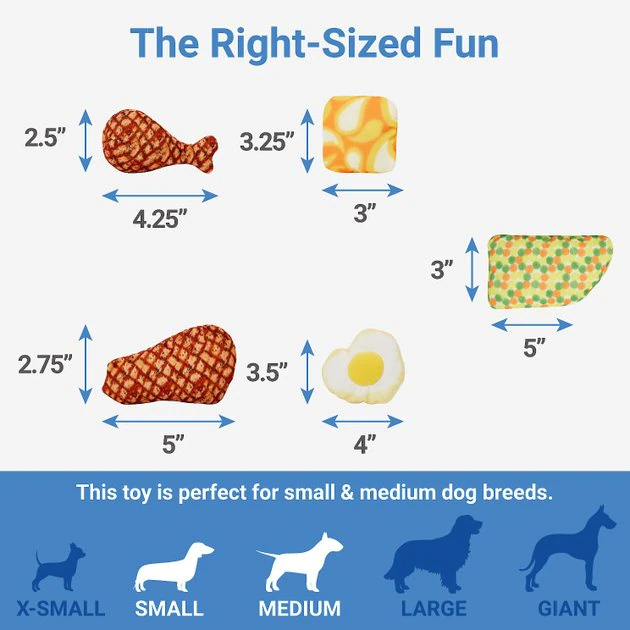 - Includes a tray and four food toys all covered in soft, plushy polyester.