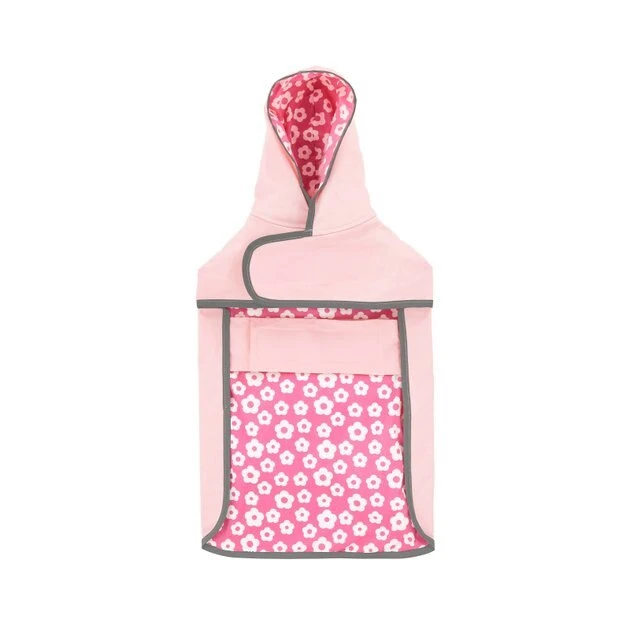 Don’t forget to measure your pet for the paw-fect fit. Rainy days won’t keep you inside for long with the Frisco Reversible Packable Dog Raincoat. Designed with a 100% water-resistant nylon shell and polyester lining, it’s ready for any drizzle or downpour. Two styles in one, it’s reversible with solid color on one side and adorable pattern on the other. The reflective binding helps increase visibility, and the built-in leash hole lets you attach a leash to your dog’s collar, underneath the raincoat. Best of all, when the rain stops, you can fold the raincoat neatly into a front pocket, equipped with a hang loop for easy stowing.