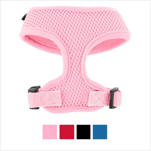 - Small and medium breed soft mesh harness is made of breathable mesh and nylon webbing.