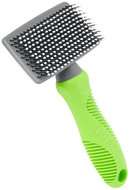 The Frisco Soft Slicker Pet Brush is made to lift away all that annoying loose hair your pet would normally shed all around the house and improve your pet’s overall coat health. This brush is designed for an easier grooming experience all around, with plastic-coated pins that protect your pet’s skin and a comfort grip handle that keeps you comfortable and in control during grooming sessions. This brush helps remove tangles and matted hair to keep your pal’s skin and coat healthy and manageable, all while helping you reduce shedding safely and gently.