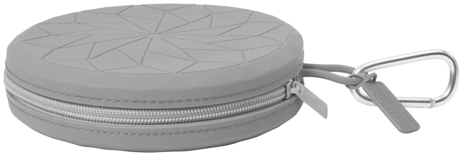 - One set of two collapsible travel bowls that fold up and zipper shut.