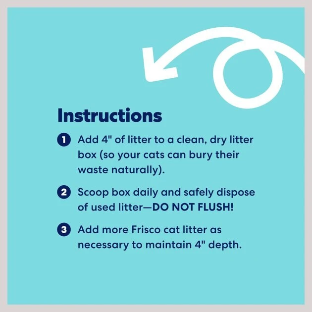 - Add approximately 4 inches of Frisco cat litter to a clean, dry litter box (this allows your cats to dig and cover their waste naturally).
